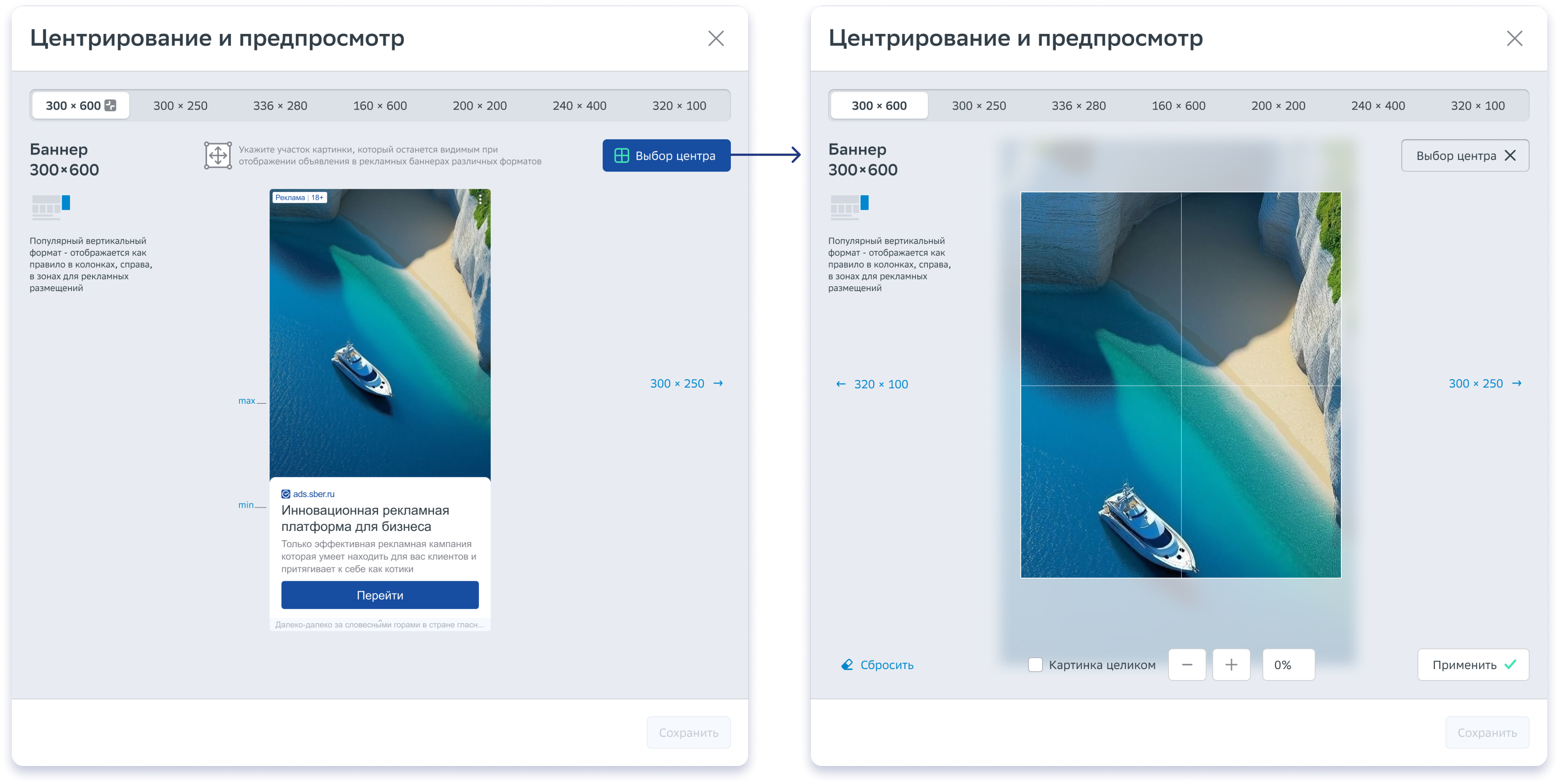 Компонент центрирования и обрезки изображений для рекламных объявлений всех форматов с последующей нарезкой и публикацией ↓